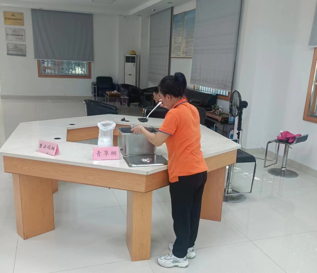 公司工會還設置了清涼溫馨驛站,為員工提供青草糊、西瓜等清涼食物。