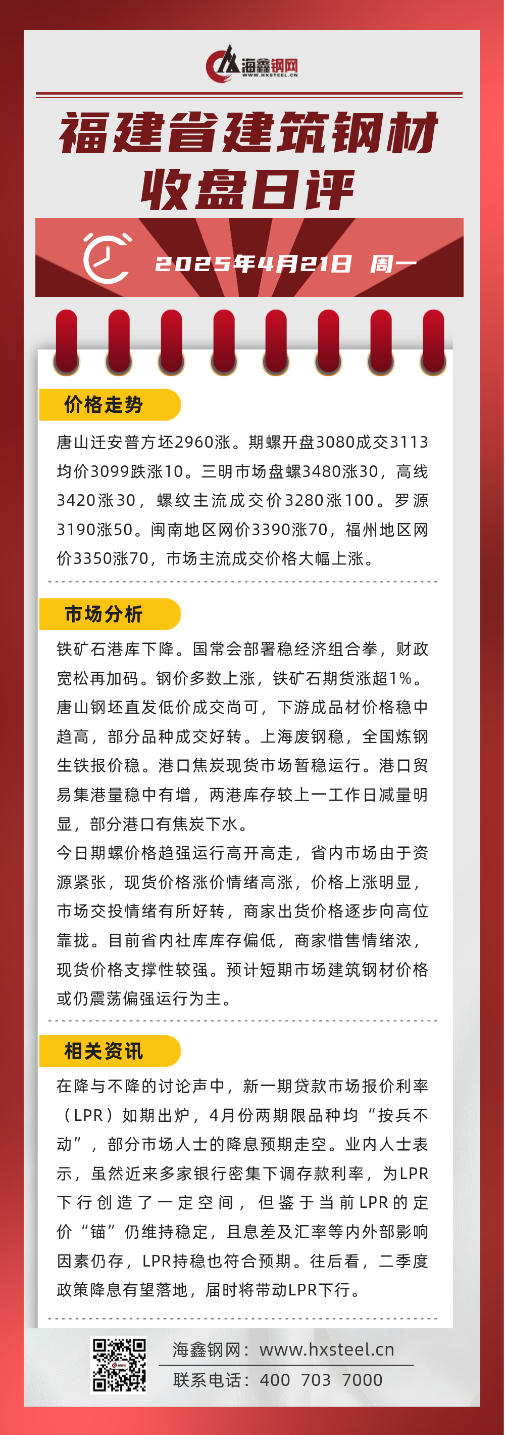 4月21日福建省內建筑鋼材收盤日評