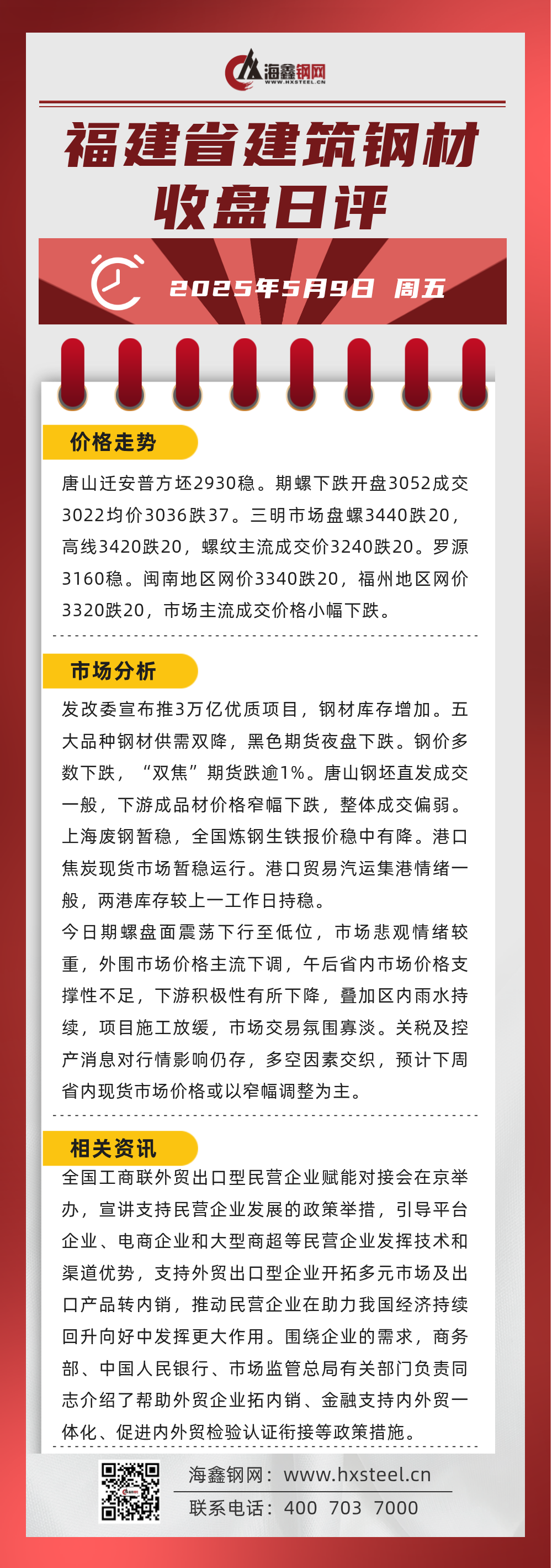 5月9日福建省內(nèi)建筑鋼材收盤日評