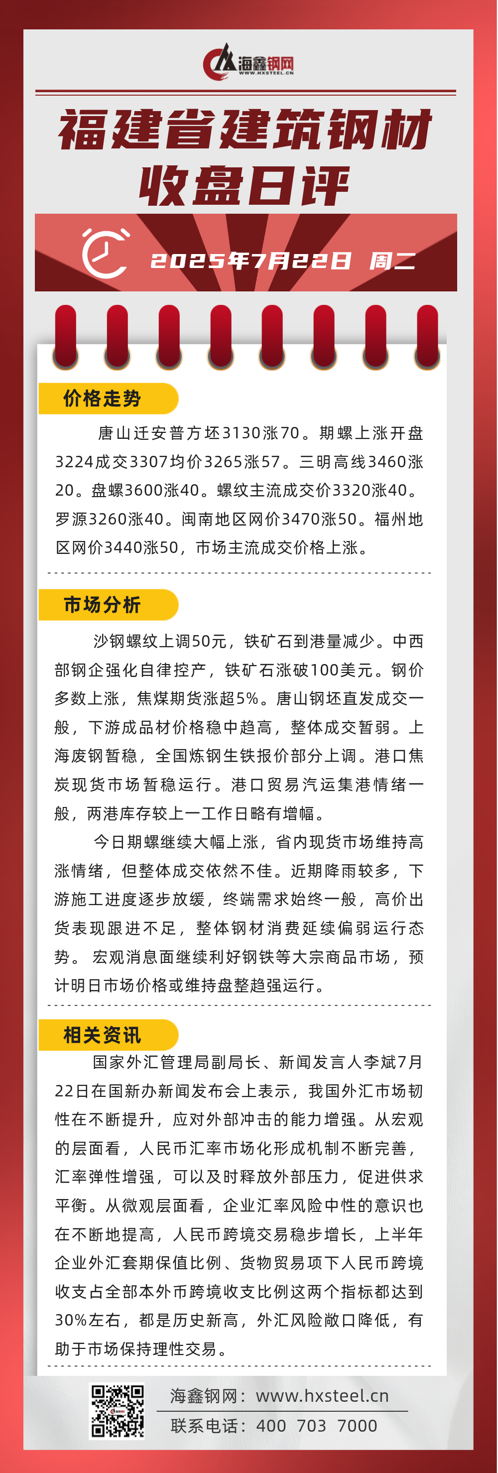7月22日福建省內(nèi)建筑鋼材收盤日評(píng)